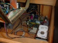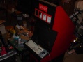 There's the brains of Exibar's Lair, mounted in it's perminant home. The harddrive is an 80 gig Maxtor. The Motherboard is an ABIT VH6-II, 800Mhz, 512 RAM. I'm using Ultimarc's ArcadeVGA video card based on the ATI 9200 chipset with 128meg of video memory.